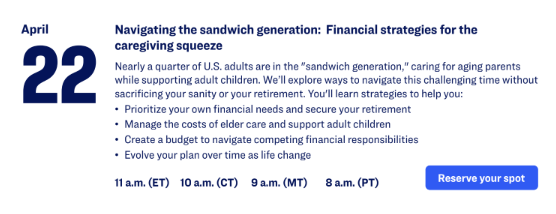 Register for live and on demand workshops and webinars that offer valuable information on Medicare, retirement savings, and investment options.